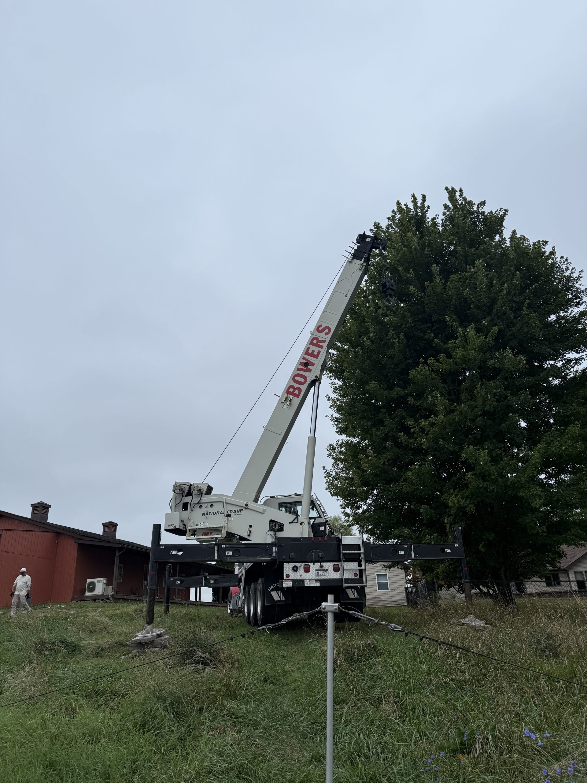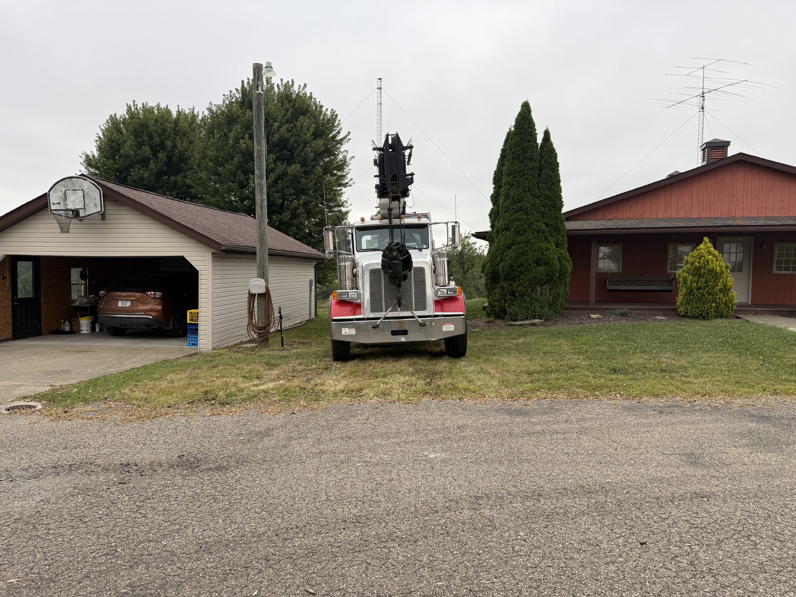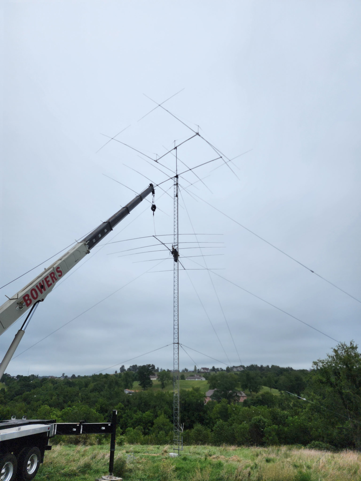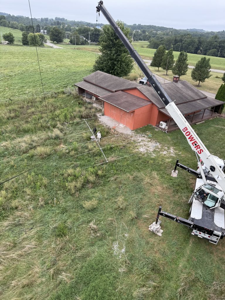 While Mike WA3C and I may have been able to get the Moxon to the top of the tower, it just didn’t seem like it would be worth the risk. Mike knew a crane company that he had used and recommended. We scheduled the date about 3 weeks in advance with the hope that the weather would be good.
